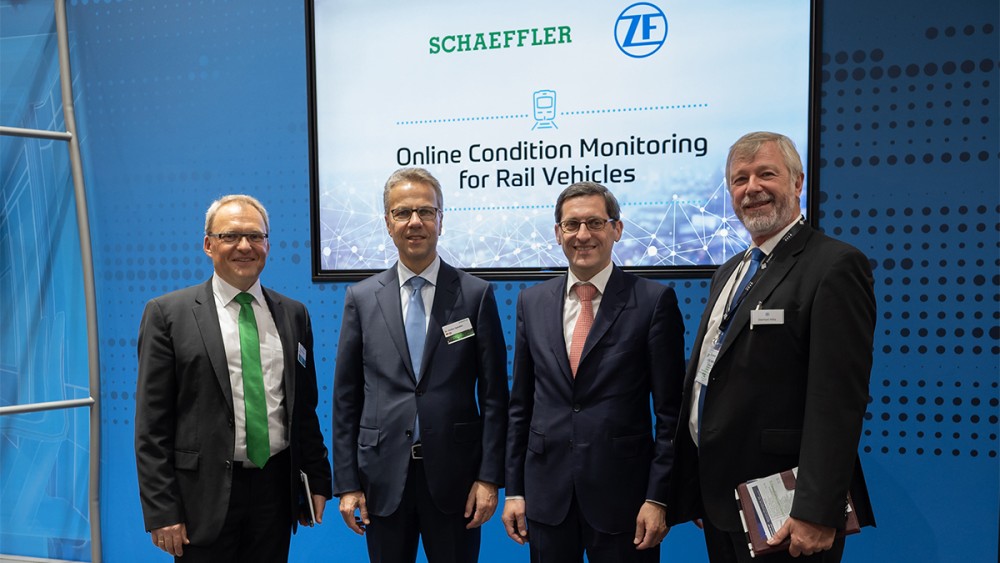 在2018年柏林国际轨道交通技术展览会上,舍弗勒和采埃孚就建立铁路行业机械动力传动系统的数字状态监测系统签署合作谅解备忘录。双方将结合各自领域专业知识,为轨道4.0解决方案提升附加值,其中作为独立单元维护的机械驱动系统,仅通过单一状态监测系统便可对其单独数字监控,所有子系统和部件均一览无余。双方的合作旨在通过分析基于状态的保养措施和运行数据,从而延长保养周期,减少停机时间。